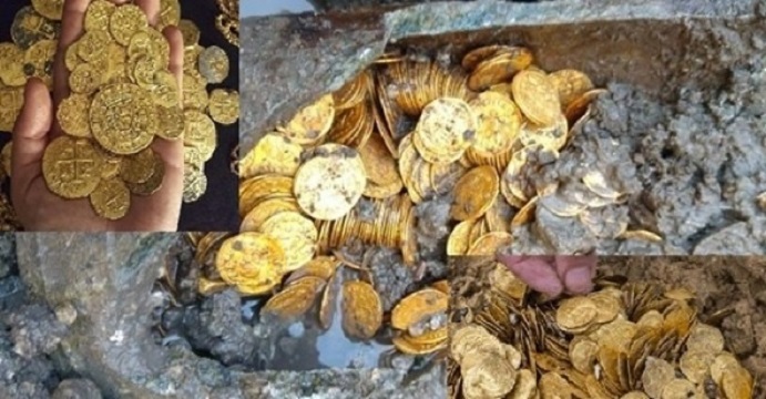 425 monedha janë gjendura prej ari të pastër 24 karat dhe peshojnë 845 gram ne …….Izrael